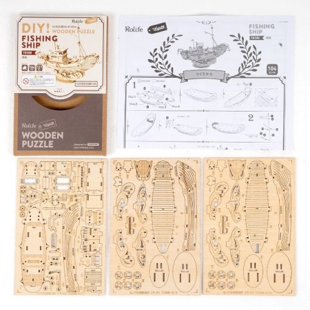 さて今回もDIY つくるんです! 3Dウッドパズルの漁船を作ってみました。基本のパーツはこんな感じ。